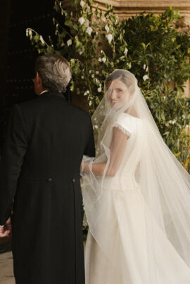 La boda en Écija de Carmen Egaña Seoane, marquesa de Monesterio: del vestido con corpiño bordado a la diadema familiar