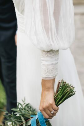 El álbum de la boda de Paloma en un pazo de Galicia: frente al mar, con un vestido bordado y deco vintage